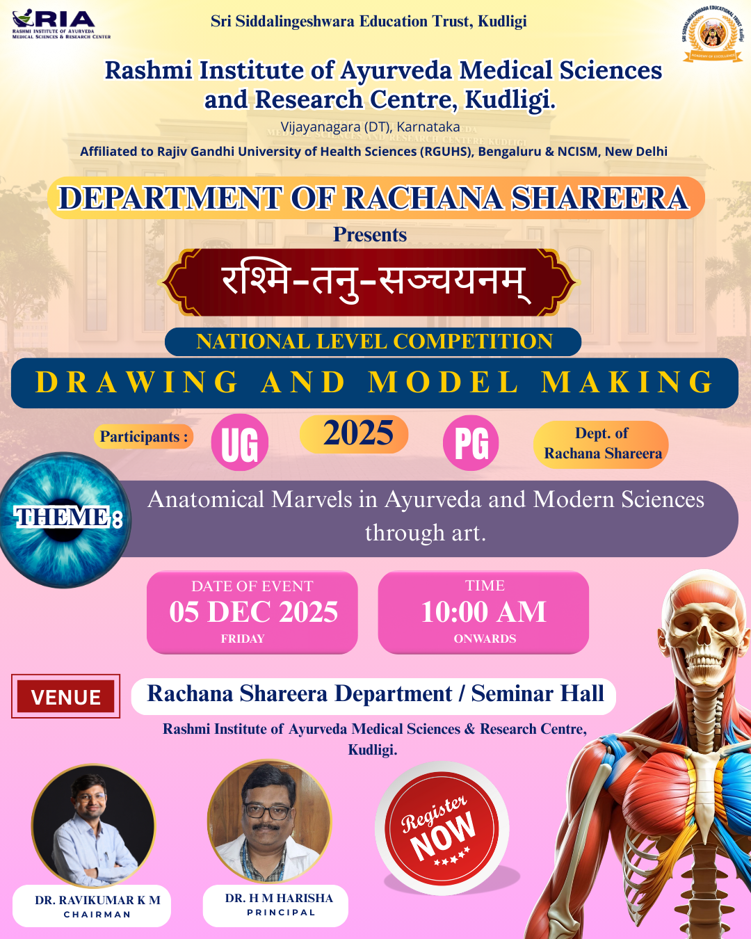Venue: Lecture Hall, Dept. of Rachana Shareera, Rashmi Institute of Ayurveda Medical College, Kudligi